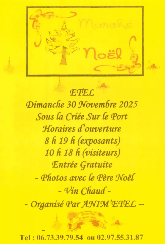 30 11 🎄 Marché de Noël, organisé par Anim'Étel 🎄 Accueil Culture, sport, vie associative Agenda des événements 🎄 Marché de Noël, organisé par Anim'Étel 🎄 Partager cette page Retour aux événements