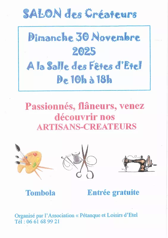 30 11 Salon des créateurs Accueil Culture, sport, vie associative Agenda des événements Salon des créateurs Partager cette page Retour aux événements