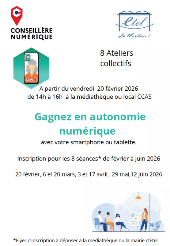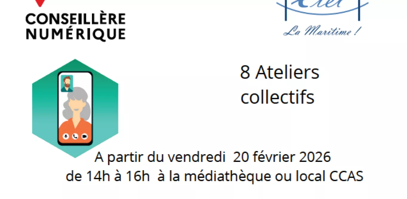 A partir du vendredi 20 février 2026 de 14h à 16h, Gaëlle, la conseillère numérique vous propose 8 ateliers collectifs pour gagner en autonomie numérique avec votre smartphone ou votre tablette.