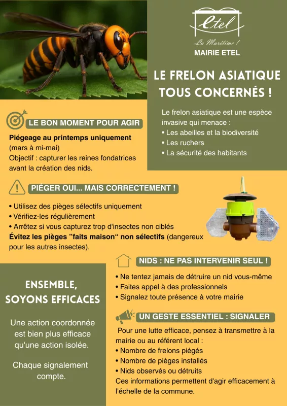 20.04.2026 Le frelon asiatique tous conscernés ! Accueil Actualités Le frelon asiatique tous conscernés ! Partager cette page Retour aux actualités